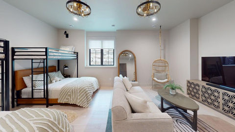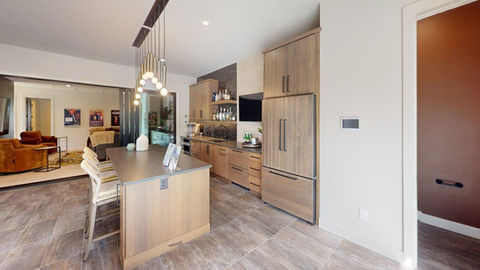 The kitchen will amaze you with a custom metal hood, grand waterfall quartz island, white oak cabinetry, panel-front Monogram appliances and a pass-through buffet into the dining room. The summer kitchen is a cook’s dream with ample cabinets, a sink, a cooktop and even a pizza oven! The luxury primary suite incorporates modern charm with clean, soft lines. The spa-like en suite features tiled walls, a large tiled shower, a freestanding air jet tub and a walk-in closet.
